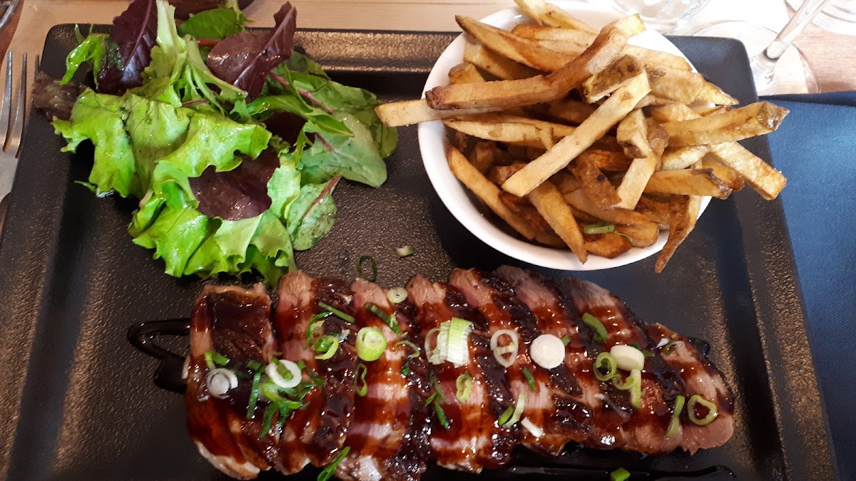 This is one of the best restaurants in Nancy. We ordered Tuna Tataki and Beef Steak. Both were super delicious. I would even give 6 stars rating to this place. The baked potato’s and salad that came with Tuna was phenomenal. The steak was cooked right. You can have your steak well done, medium or rare. The waiters are very nice and speak English. For drinks we ordered mojito and red wine. The waiter by the name Saba who was extremely nice offered to taste different wines prior to ordering to make sure I get the right one. For desert meat daughter ordered tiramisu which she rated 10 out of 10. I will definitely come back again to try other dishes on the menu.